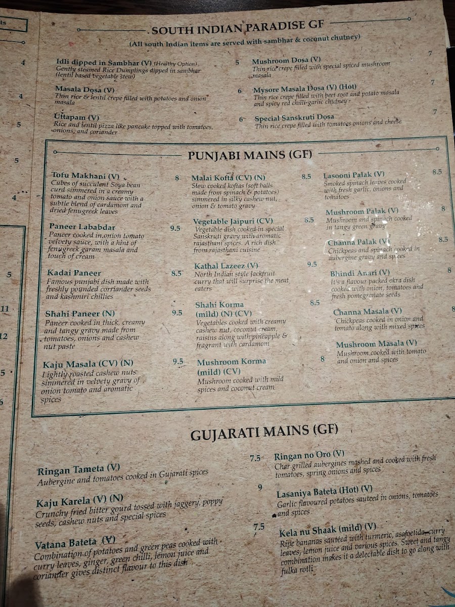 In terms of service, Sanskruti provides attentive yet unobtrusive staff who are knowledgeable about the menu and quick to make recommendations based on customer preferences. The overall dining experience is relaxed yet refined, with a strong emphasis on customer satisfaction.